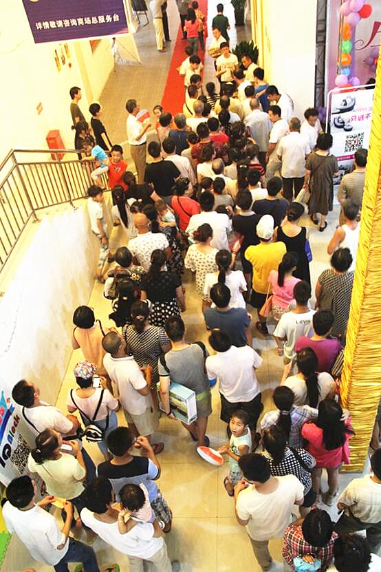 (排隊領取免費禮品的進店客戶)